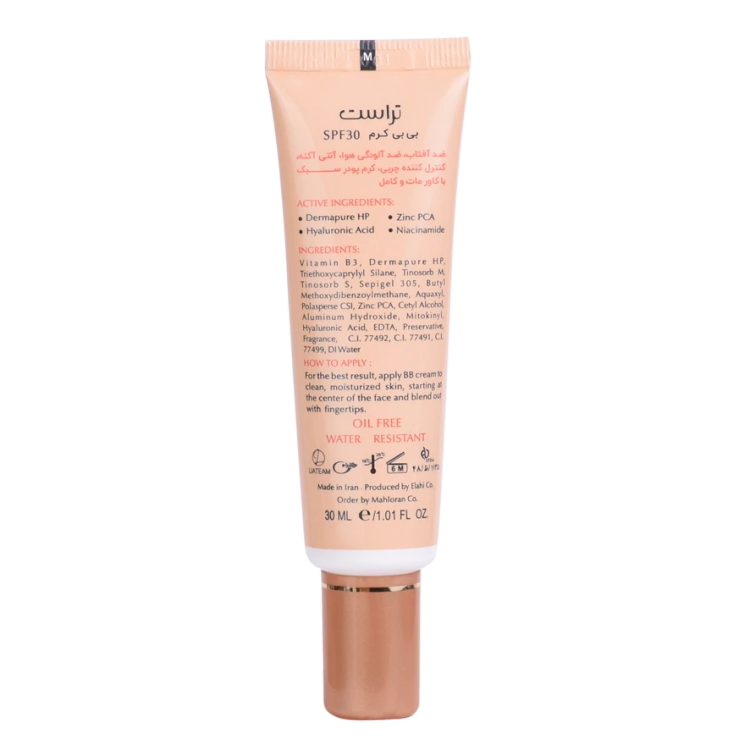 پوشش طبيعي و بسيار عالي با ظاهري مات و بافت سبک کنترل ترشح چربي پوست و جلوگيري از ايجاد جوش و آكنه و التهابات پوستي (حاوي زينك PCA)آبرسان قوي و حفظ رطوبت پوست (حاوي هيالورونيك اسيد)ضدچروك و تقويتكننده سد دفاعي پوستضدآفتاب و محافظ در برابر نور خورشيد با SPF30روشنكننده، ضدلك و كاهش ملانين پوست فاقد چربي (Oil-Free)مناسب انواع پوست