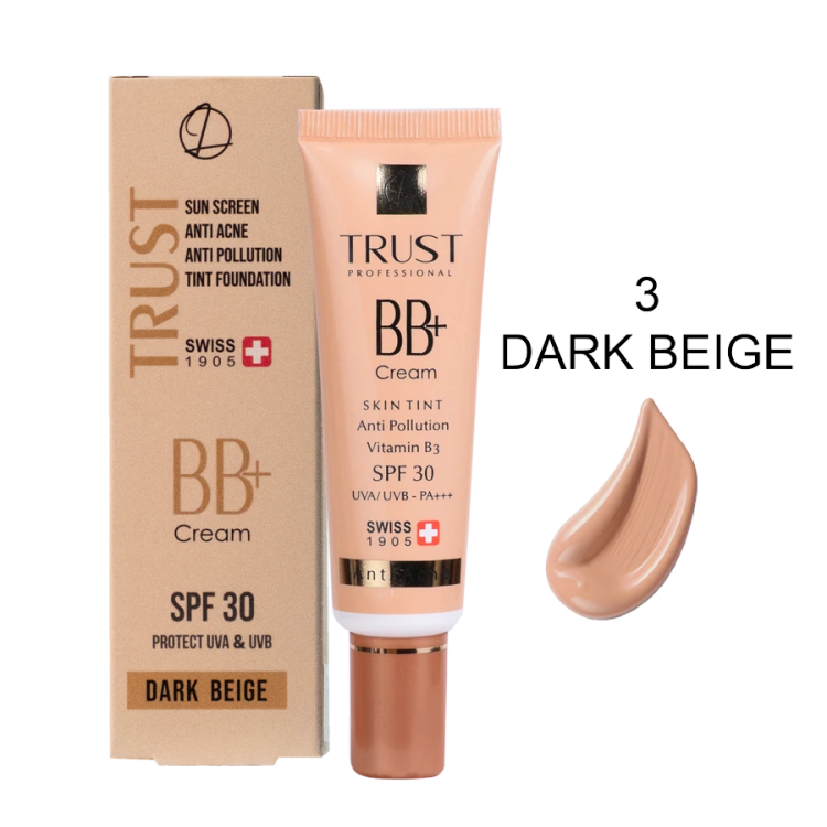 بی بی کرم پلاس (BB+) تراست، در 3 رنگ بژ روشن، بژ طبیعی و بژ تیره تولید و عرضه میشوند.