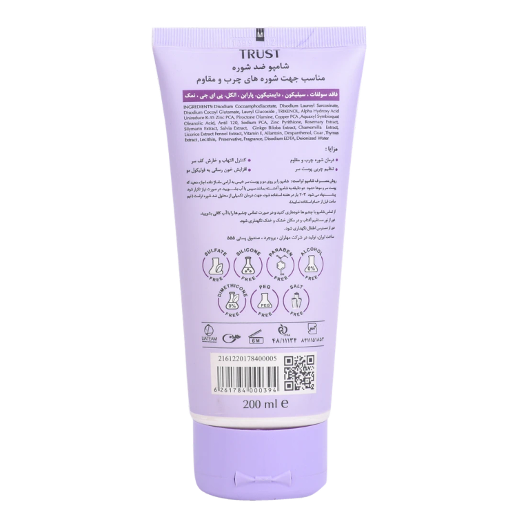 توجه مهم: در طول درمان شوره با محصولات تراست، لطفاً از هیچ شامپو یا محصول مراقبت موی دیگری استفاده نکنید و در صورت نیاز فقط ازسرم کراتین و آرگان استفاده نمایید.