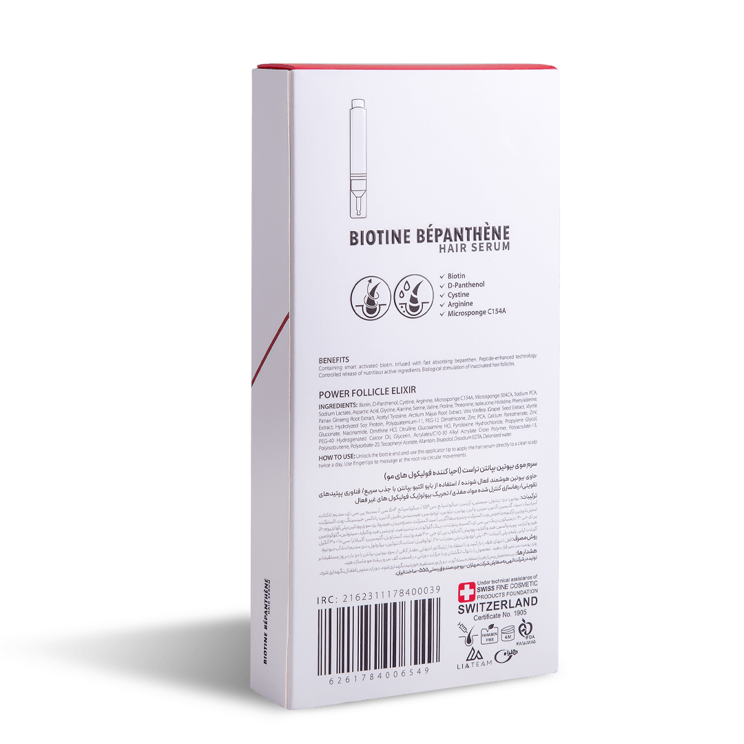 قفل انتهای ظرف را باز کنید و با استفاده از اپلیکاتور انتهایی مقدار کافی از سرم بیوتین بپانتن را دو بار در روز مستقیما بر روی پوست سر تمیز قرار دهید. محصول را با نوک انگشتان و با حرکات دورانی در قسمت کف سر و ریشه مو ماساژ دهید