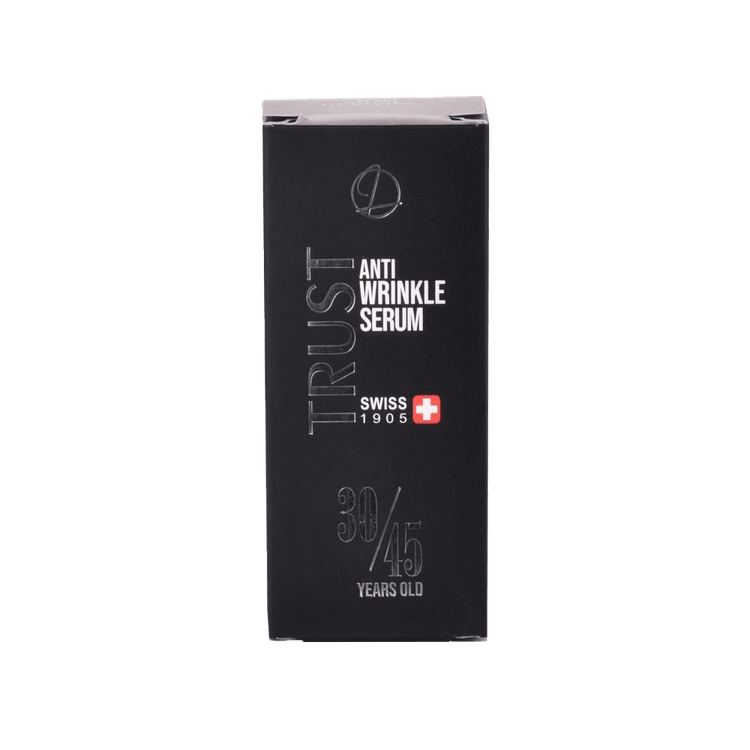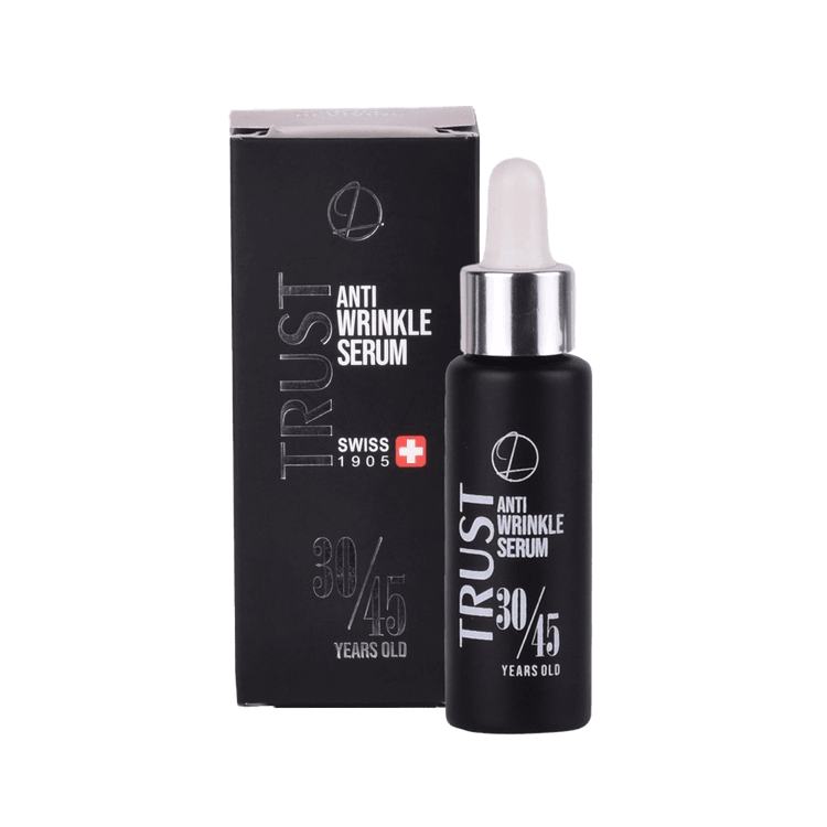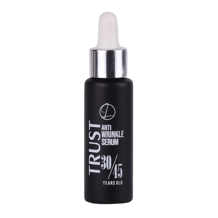 سرم ضدچروک صورت تراست (مناسب 30 تا 45 سال)، با داشتن ترکیبات فعال آبرسان و پپتیدهای تقویتکننده پوست، باعث تحریک تولید کلاژن در پوست و آبرسانی آن میشود. ترکیب هیالورونیک اسید به صورت همافزا با سدیم پی سی ای و زایلیتول، علاوه بر آبرسانی، به رفع چینوچروکهای پوستی کمک میکند. ترکیب گلوکونولاکتون خاصیت لایهبرداری داشته و ضمن از بین بردن سلولهای مرده پوست آن را آبرسانی نیز میکند. این سرم از آسیب رادیکالهای آزاد ناشی از پرتوهای UV به پوست جلوگیری کرده و از بروز چینوچروک روی پوست پیشگیری میکند.